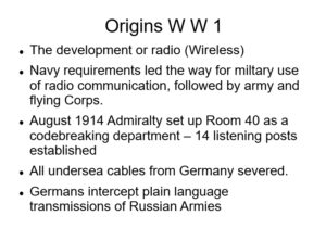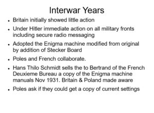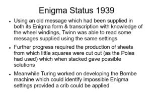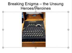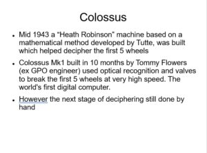 Wed 24th Sept – at Museum of Communication, Burntisland for MOC 2025 Exhibition – The Box that Changed the World – 100 Years of Television, and talk on Bletchley Park, Enigma, Y Stations – The Unsung Heroes/Heroines by Pete Bates GM4BYF. Synopsis:- One or two names are rightly well known for their parts in the system for gathering and decoding/decrypting radio messages and producing Ultra – the intelligence which made a major contribution to the Western Allies eventual success in WW2. But many others were heroes – some of whom gave their lives in the process. This presentation highlighted some lesser known aspects of what took place.