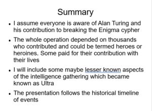 LRS member, Pete GM4BYF starting his lecture “Breaking Enigma, the unsung heroes / heroines.
