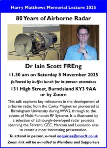 Sat 8th Nov 2025 – MOC Lecture – 80 Years of Airborne Radar by Dr Iain Scott FREng (after MOC AGM).By Alan GM3PSP / October 19, 2025