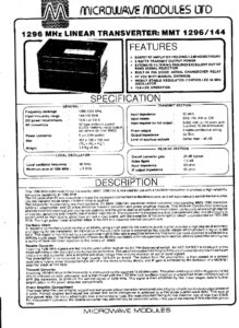 Fully tested – 10W in on 144 generates 2W on 1296. Specification attached below.